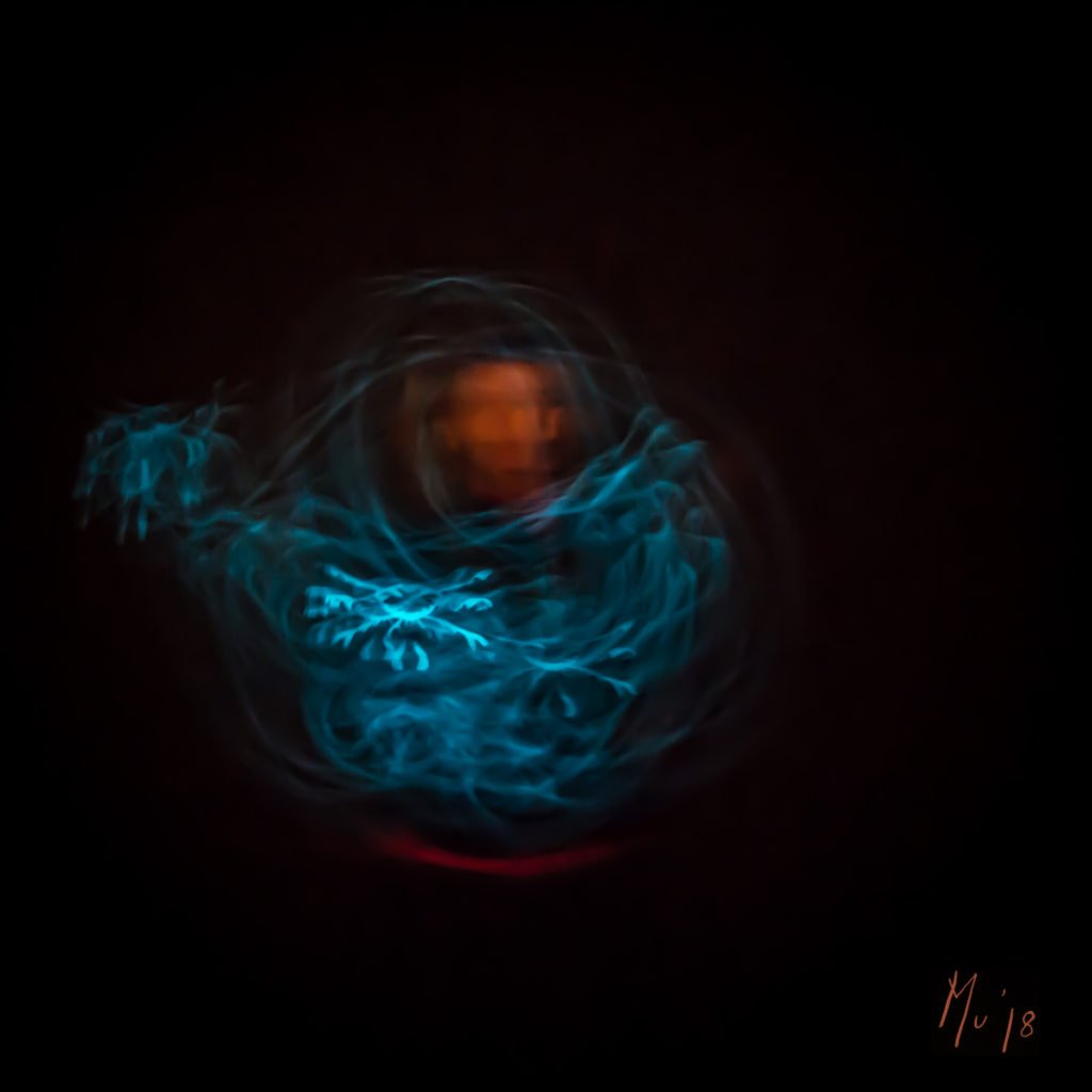 Dans le cadre de sa recherche doctorale en Art et Sciences de l’Art, Mu Blondeau développe, en partenariat avec UCLouvain et ARTS2, une démarche transdisciplinaire appariant ateliers artistiques et laboratoires de biologie marine. Par un procédé expérimental innovant, elle conçoit des dessins vivants à partir de micro-organismes marins bioluminescents, dont les cycles d’apparition et de disparition deviennent constitutifs de l’œuvre.